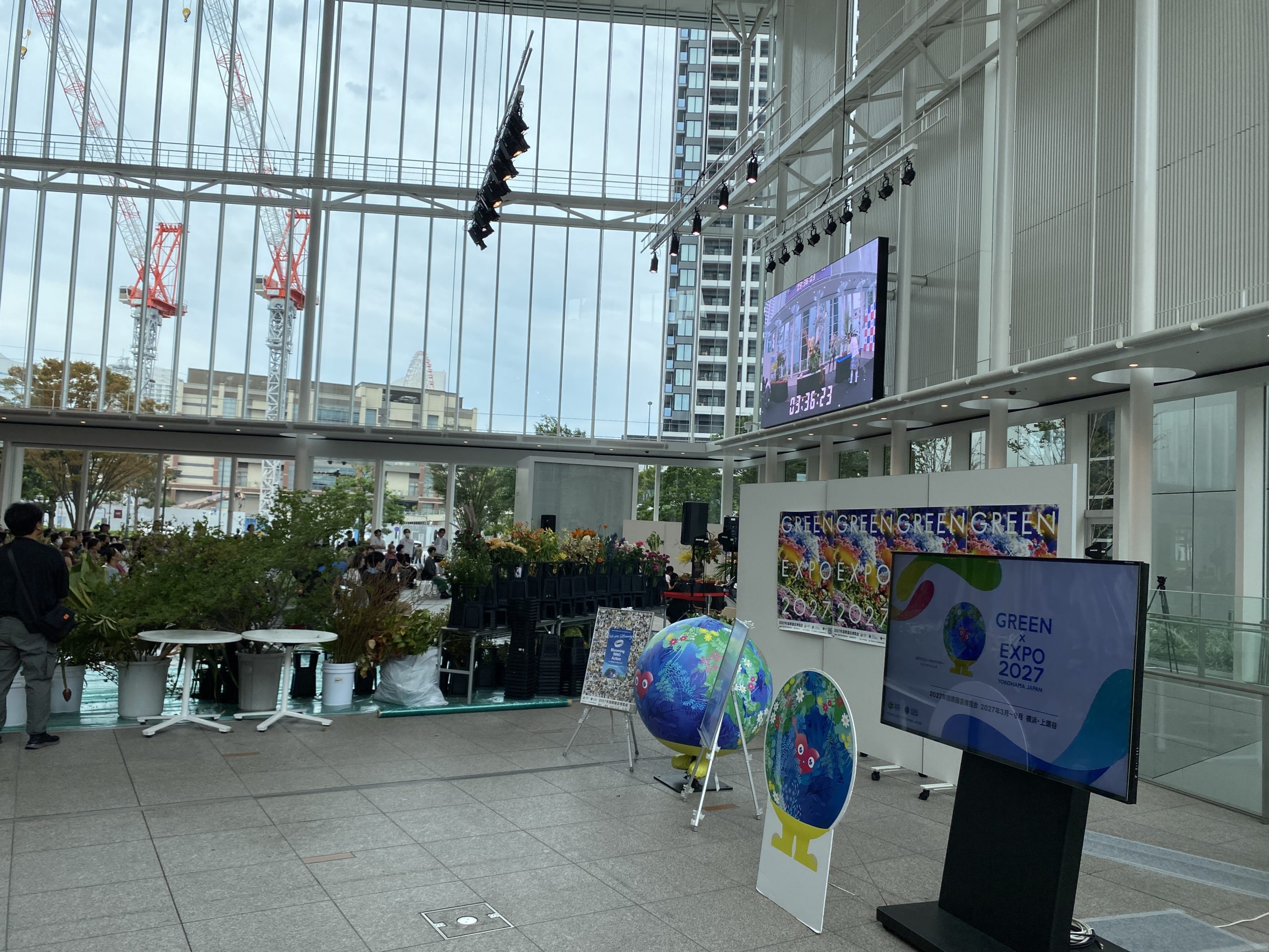 横浜市役所アトリウムにて、