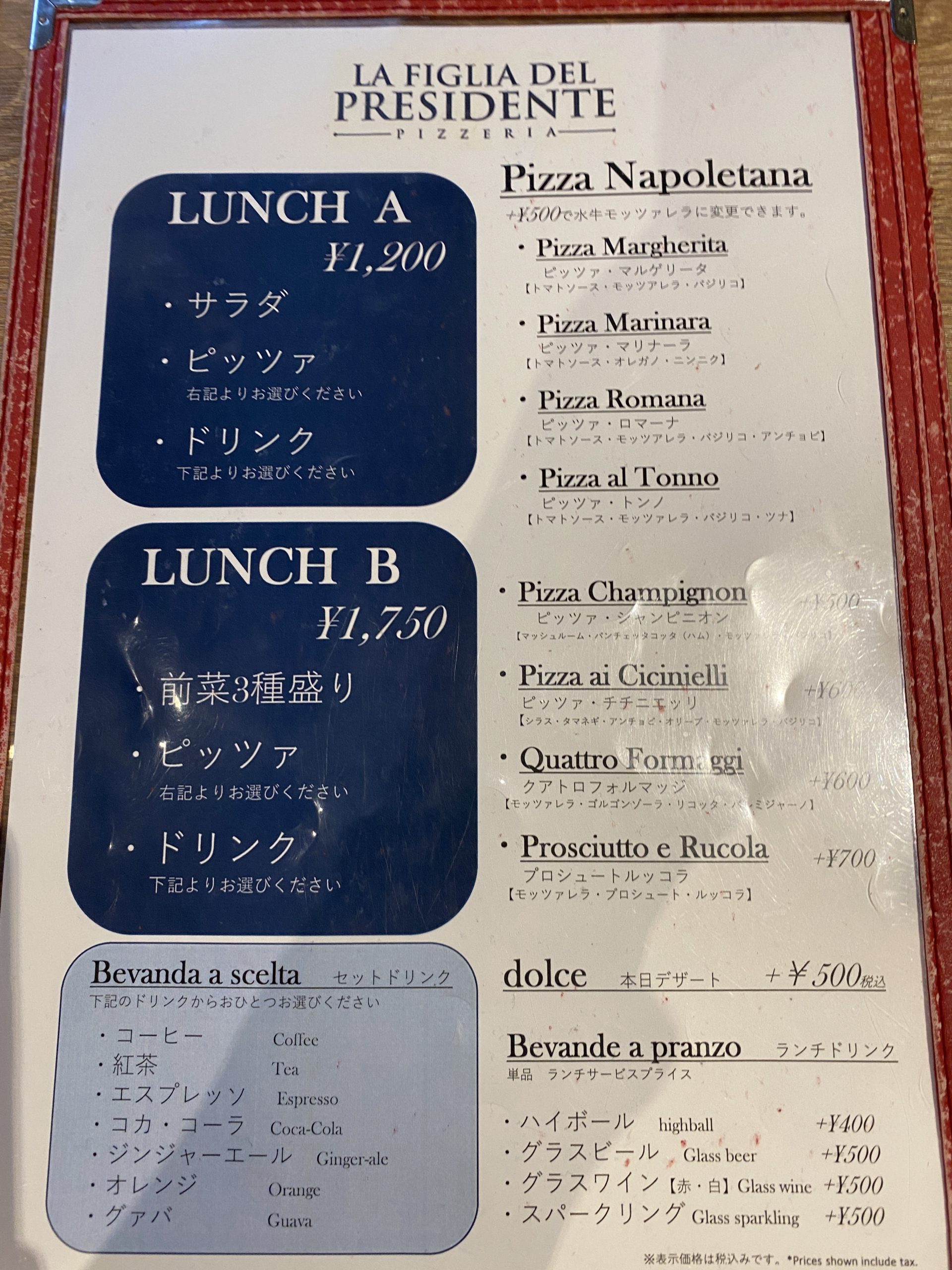 ちなみに、店名の由来は「大統領にピザを作った職人の娘」という事で、G7の際に大統領にピザを提供したナポリの名店の系譜を意味するとの事。期待できますね♪